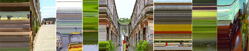 - man muss zweimal hinsehen, um ihren Realitätsgehalt zu erkennen. Einzelne Bilder unterschiedlicher Breite fügen sich